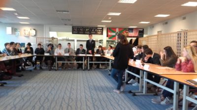 Nous avons ensuite réalisé, par groupe de 3 ou 4, des jeux de société que nous avons inventés de A à Z – règles, plateau, questions et réponses. Ce jeu devait porter sur le thème des élections présidentielles américaines, ce qui nous a permis d’en savoir d’avantage sur le sujet. Cette activité nous a aussi fait découvrir de nouveau mots et renforcé notre vocabulaire. C’était très amusant, à la fin nous avons partagé nos jeux, joué ensemble et formé aussi de belles amitiés.