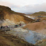 Qui n’a jamais rêvé d’aller d’Europe en Amérique d’une seule foulée ? Notre cher professeur M. Warnet et toute l’équipe pédagogique nous montrent un passage secret pour réaliser ce rêve : il s’agit d’un pont entre les 2 continents (entre la plaque eurasienne et la plaque américaine). Plus tard, nous découvrons des effusions de soufre reconnaissable entre couleur et odeur. Après notre nuit à l’hôtel Cabin, nous nous réchauffons dans le Secret Lagoon, une source chaude entourée d’un parcours entre mini geyser et effusion d’eau bouillante où le vent frais nous vivifie. Une autre démonstration des éléments est à l’œuvre : dans une serre géothermique que nous avons eu la chance de visiter. Une dégustation de tomates cultivées sur place accompagnait l’explication, le panier est revenu vite vide.