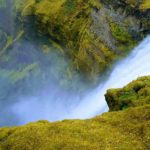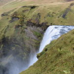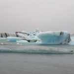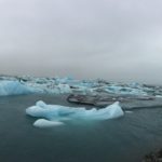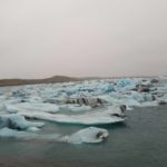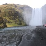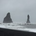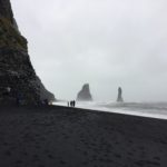 Nous sommes arrivés à la cascade de Skogafoss (dite de la Forêt). A cause du vent agité et de la puissance de la cascade, nous sommes revenus trempés, mais, dans nos esprits, nous resterons impressionnés. Ensuite, ce furent pour nous les basques, les retrouvailles avec la houle, le vent et le sable : sur la splendide plage de Vikn de magnifiques orgues basaltiques se dressent au bord de l’Océan Atlantique. Deux colonnes de basalte, peut-être des trolls d’autrefois, surplombent la plage de sable noir. Suite à ce premier choc visuel, un deuxième se profile très loin et nous voyons la face émergée de nombreux icebergs et nos amis les phoques (pour les plus chanceux !). Il s’agit sans doute du plus beau paysage de notre voyage ! Puis, un étrange spectacle s’offre à nos yeux : d’anciennes coulées de lave recouverte de mousse à perte de vue. D’après Frederik notre guide, un volcan islandais aurait provoqué, par son éruption monumentale, une famine et de mauvaises récoltes de l’Europe au Japon à la fin du XVIIIème siècle. Ces mauvaises récoltes seraient un facteur qui conduisit à la Révolution française quelques années plus tard…