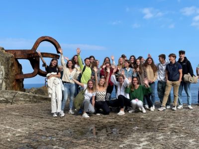 De plus, la DNL (discipline non linguistique) étant l’EPS, une activité sportive s’imposait. San Sebastian étant une ville sur la mer nous avons choisi logiquement le surf. Les élèves ont tout particulièrement apprécié la sympathie des moniteurs de la « Zurriola surf eskola » et la convivialité de ce moment, gage de cohésion qui renforce le lien entre les élèves.