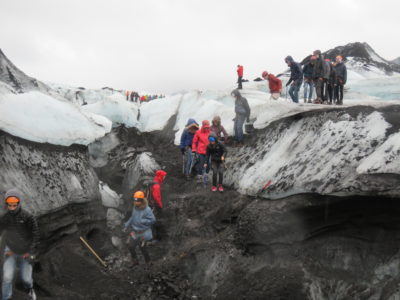 Reykjavik est la capitale de l’Islande depuis le milieu du XIXème siècle. Après l’indépendance du pays, cette ville connut un essor sur tous les plans. Aujourd’hui, elle compte environ 200 000 habitants, soit les quasis deux tiers des islandais. C’est aussi la capitale du nord du monde. Nous avons marché dans le centre afin d’atteindre la cathédrale monumentale. Le catholicisme cohabite avec le protestantisme religion officielle de l’Etat. Ces monothéismes ont d’ailleurs cohabité longtemps avec les païens. Certains élèves ont pu prendre un ascenseur afin d’admirer la vue depuis le clocher de l’église. Par la suite, le mauvais temps nous a contraints à changer nos projets : direction le musée des glaciers et son tunnel de glace grandiose. Les marques cendrées, traces d’anciennes éruptions, rappellent que l’Islande est le pays des extrêmes.