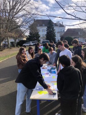 « Nous avons beaucoup aimé organiser le jeu et sensibiliser nos camarades à l’écologie, tout en s’amusant ! C’était agréable aussi de pratiquer l’espagnol en extérieur, par groupes. Nous nous sommes sentis utiles d’avoir apporté quelques connaissances à nos camarades hors section européenne. Pourquoi ne pas reproduire ce type d’activité pour essayer de transmettre la spontanéité que nous avons réussi à acquérir en section euro ? »